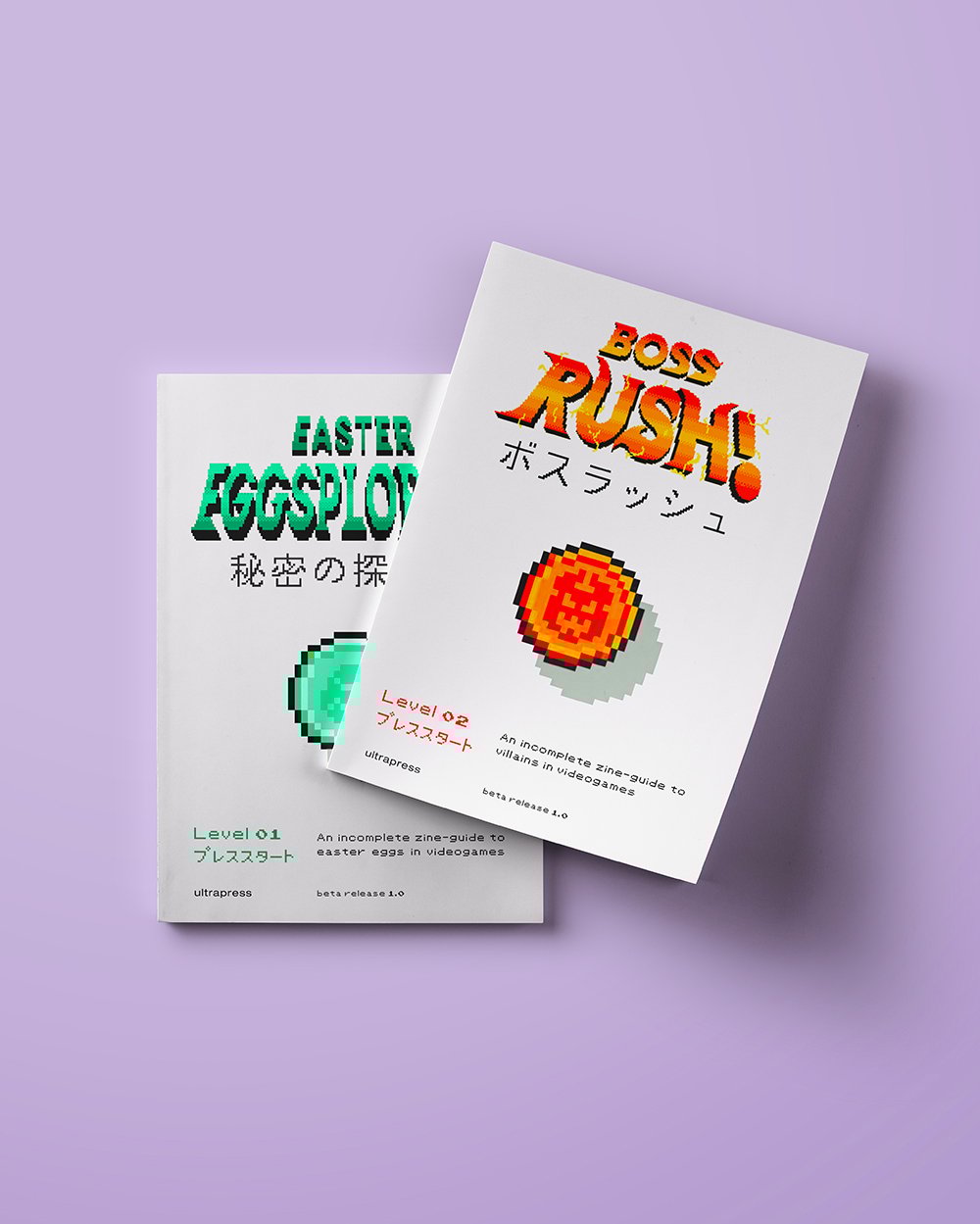 Issue 01 is an incomplete zine-guide to easter eggs in video games, featuring an historical introduction full of anecdotes and an analysis of 15 easter eggs accompanied by original artworks.